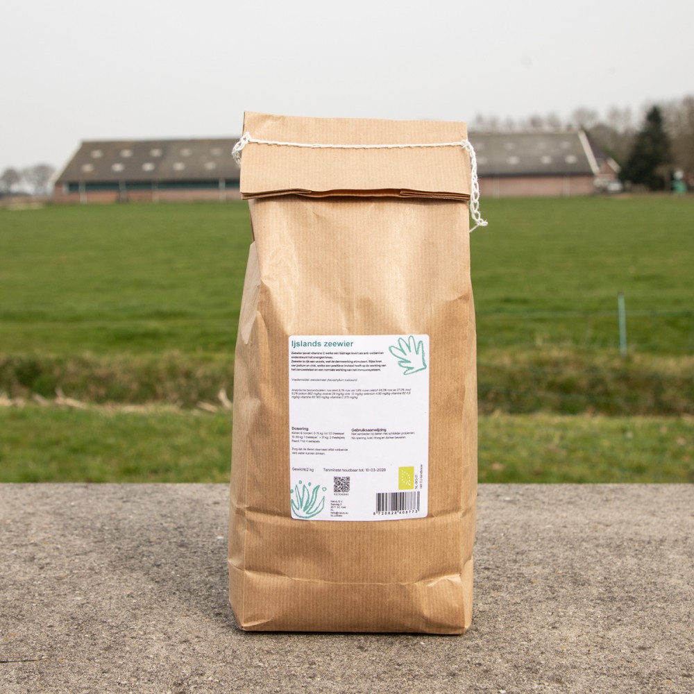 IJslanse zeewier van Bio-Ron is grof gehakt, stofvrij en ruikt heerlijk.