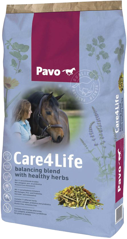Pavo Care4Life is een gezonde graanvrije, melassevrije en havervrije muesli die alle ingredienten bevat om je paard gezond te houden.